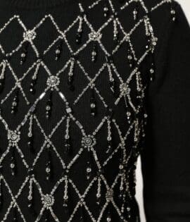 Dolce & Gabbana Black Cashmere Embellished Long Sleeves Top