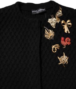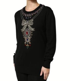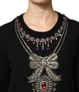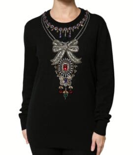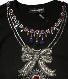 Dolce & Gabbana Black Cashmere Crystal Embellished Sweater