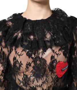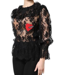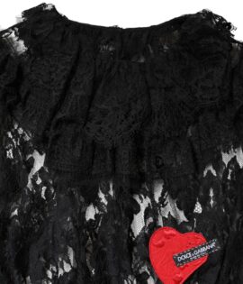 Dolce & Gabbana Black Cotton Floral Lace Women Blouse Top