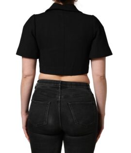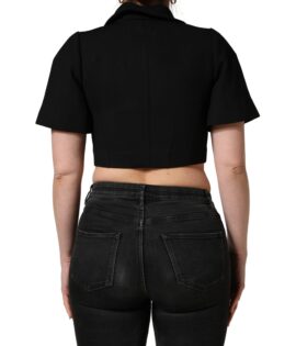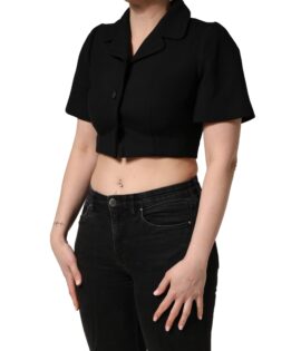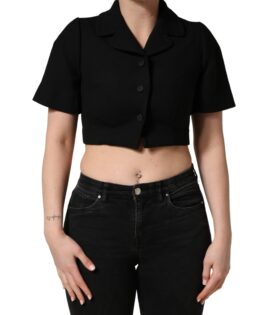 Dolce & Gabbana Black Collared Short Sleeves Cropped Blouse Top