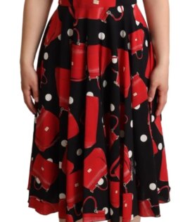Dolce & Gabbana Black Red Bag Print A-line Mid Length Dress