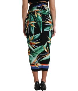 Dolce & Gabbana Black Strelitzia High Waist Wrap Midi Skirt