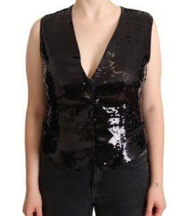 Dolce & Gabbana Black Sequin V-Neck Sleeveless Vest Tank Top