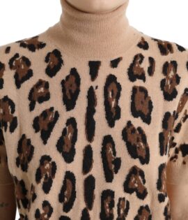 Dolce & Gabbana Beige Leopard Print Wool Turtleneck Top