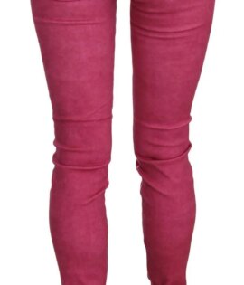 Dolce & Gabbana Pink Velvet Mid Waist Skinny Trouser Pants