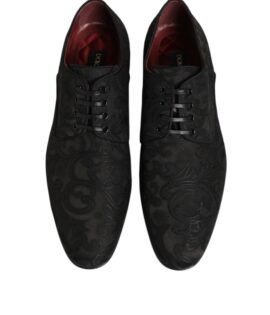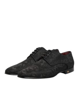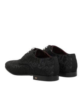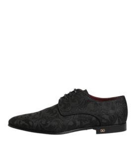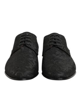 Dolce & Gabbana Black Brocade Lace Up Derby Men Dress Shoes