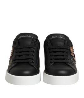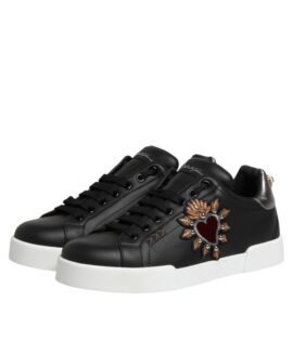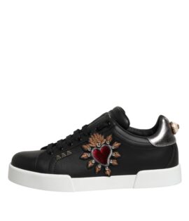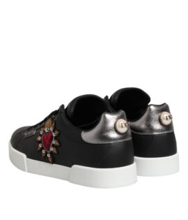 Dolce & Gabbana Black Leather Heart Embellished Sneakers Shoes