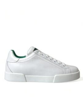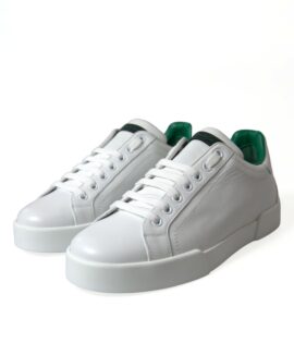 Dolce & Gabbana White Green Leather Portofino Sneakers Shoes