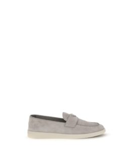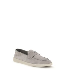 Prada Gray Calf Leather Bos Taurus Slip-On Loafers