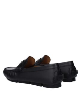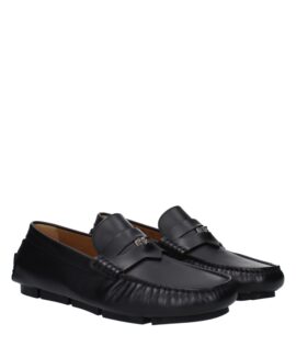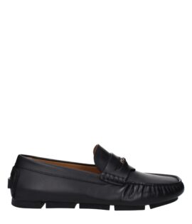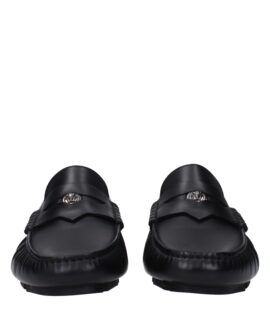 Versace Black Leather Slip-On Loafers