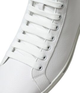Dolce & Gabbana White Calf Leather Bos Taurus Low Top Sneakers
