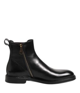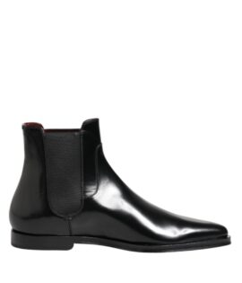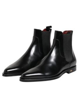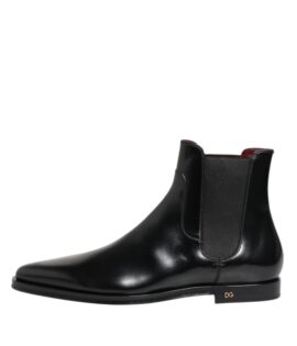 Dolce & Gabbana Black Chelsea Leather Mid Calf Boots Shoes