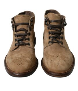 Dolce & Gabbana Brown Leather Lace Up Ankle Boots Shoes