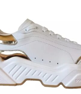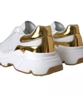 Dolce & Gabbana White Gold DAYMASTER Leather Sneakers Men Shoes