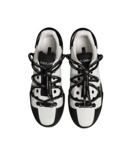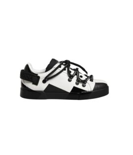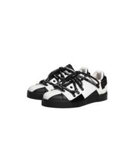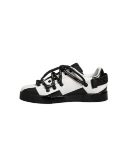 Dolce & Gabbana White Black Leather Portofino Sneaker Shoes