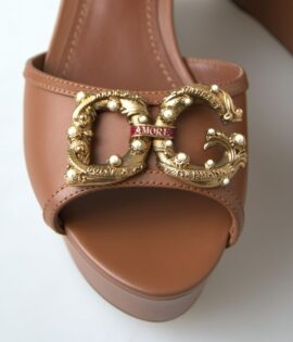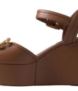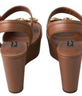 Dolce & Gabbana Brown Leather AMORE Wedges Sandals Shoes