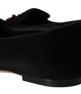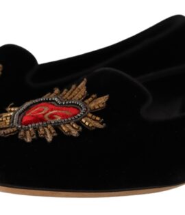 Dolce & Gabbana Black DG Sacred Heart Patch Slip On Flat Shoes