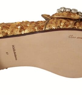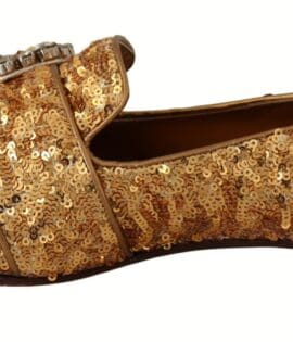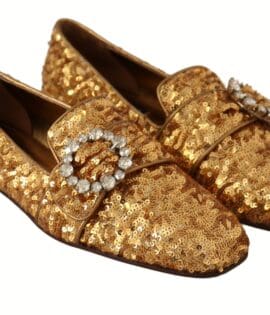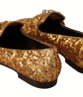 Dolce & Gabbana Gold Sequin Crystal Flat Women Loafers Shoes