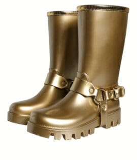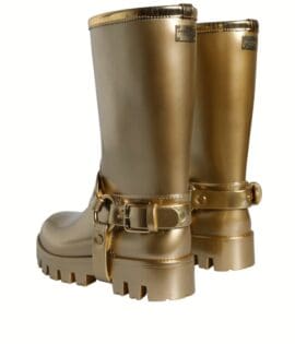 Dolce & Gabbana Metallic Gold Rubber PVC Rain Boots Shoes