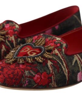 Dolce & Gabbana Multicolor Jacquard Sacred Heart Patch Slip On Shoes