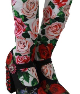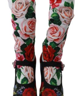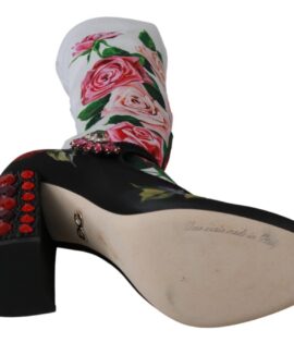 Dolce & Gabbana Black Floral Socks Crystal Jersey Boots Shoes