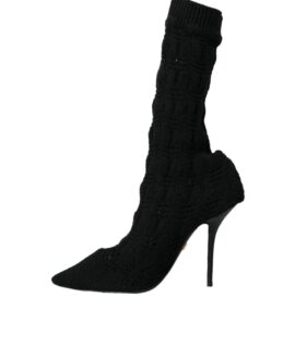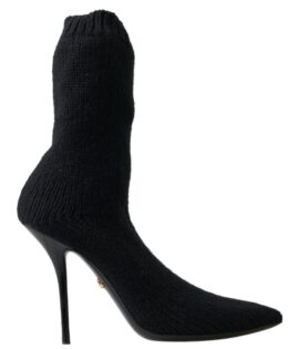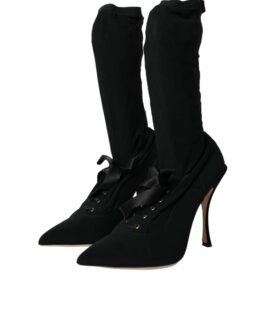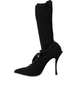 Dolce & Gabbana Black Stiletto Heels Mid Calf Boots Shoes