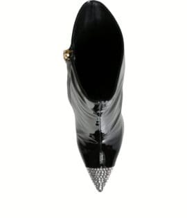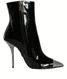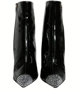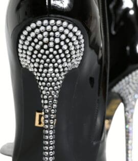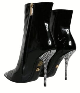 Dolce & Gabbana Black Patent Leather Crystal Heel Boots Shoes