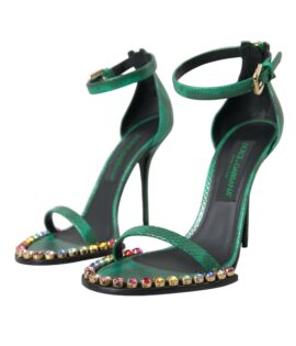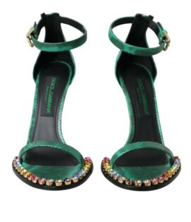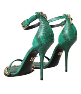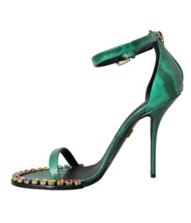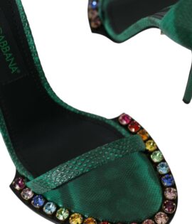 Dolce & Gabbana Green Exotic Leather Crystal Sandals Shoes