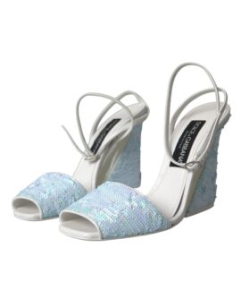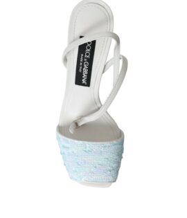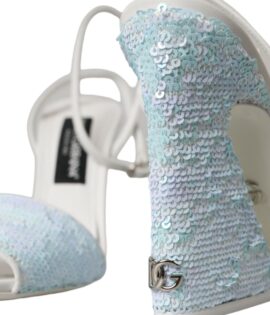 Dolce & Gabbana Light Blue Sequin Ankle Strap Sandals Shoes