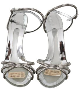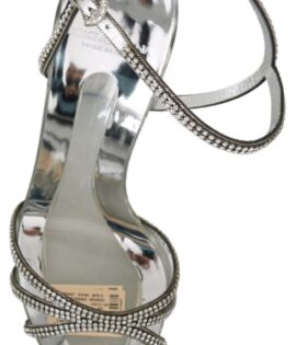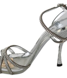 Dolce & Gabbana Silver Crystal Ankle Strap Sandals Shoes