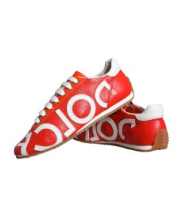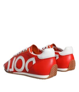 Dolce & Gabbana Red White Leather Logo Casual Sneakers Shoes
