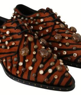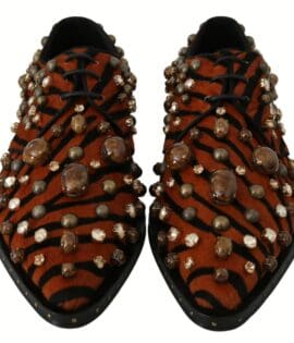 Dolce & Gabbana Orange Pony Hair Crystal Dress Broque Shoes
