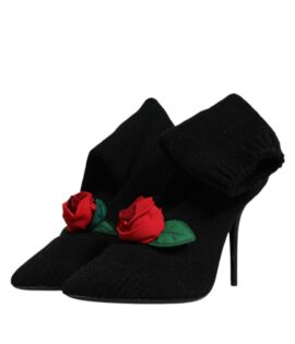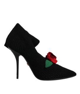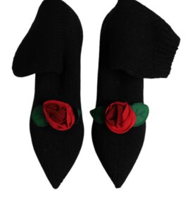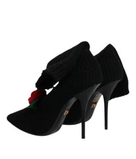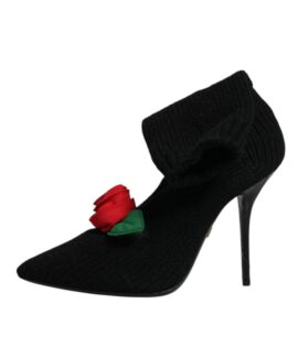 Dolce & Gabbana Black Red Floral Crystal Heel Slingback Shoes