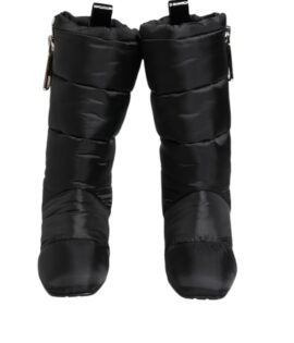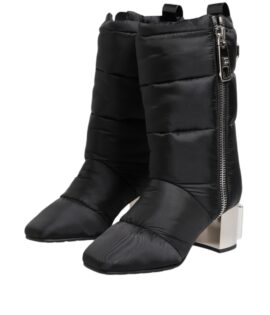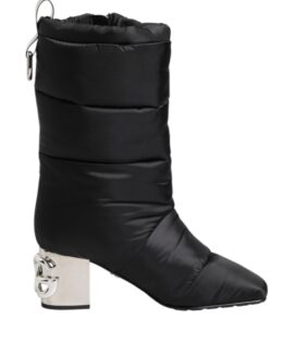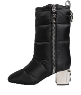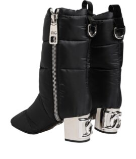 Dolce & Gabbana Black Padded Mid Calf Logo Heel Boots Shoes