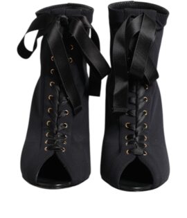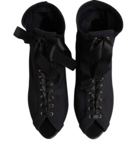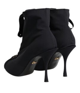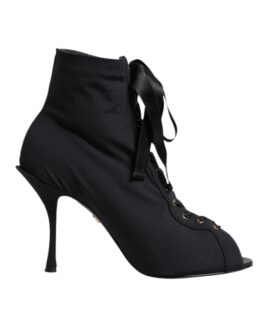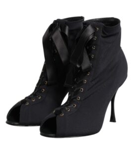 Dolce & Gabbana Black Stiletto Heels Lace Up Boots Shoes